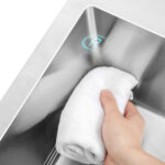 La base cuenta con 8 paneles acústicos estratégicamente colocados, que, junto al recubrimiento externo, permiten una excelente reducción del ruido producido por el agua o el contacto con utensilios, generando una experiencia de uso más silenciosa y confortable.