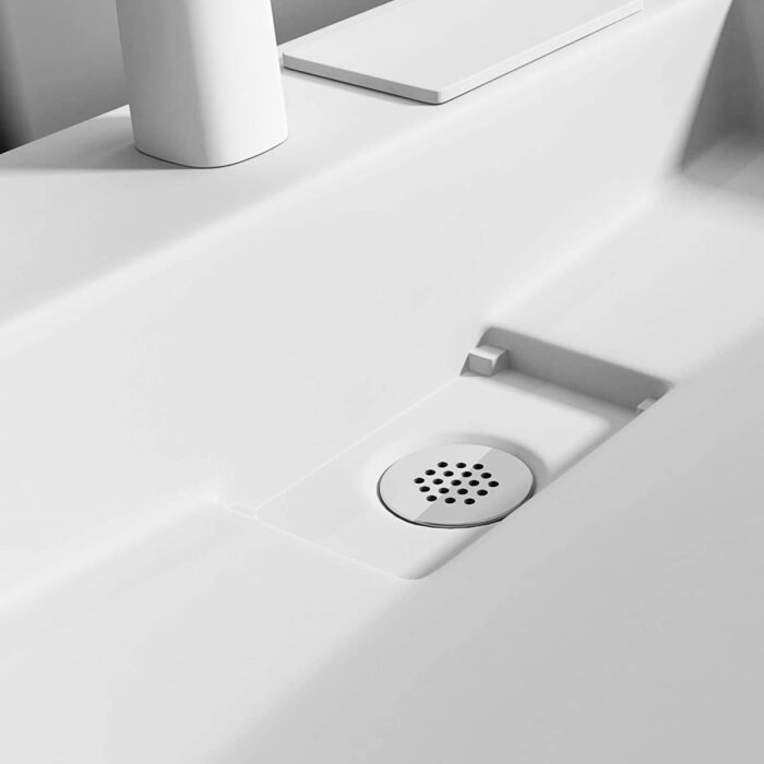 Cuarzo Corian De apoyo o De Colgar Diseño único Incluye elementos de fijación Color: Blanco Mate Dimensiones: 998x475x100mm.