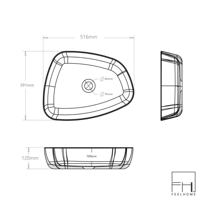 DIMENSIÓN PRODUCTO: Externas (516x391x120mm). Orificio Desagote Ø45mm.