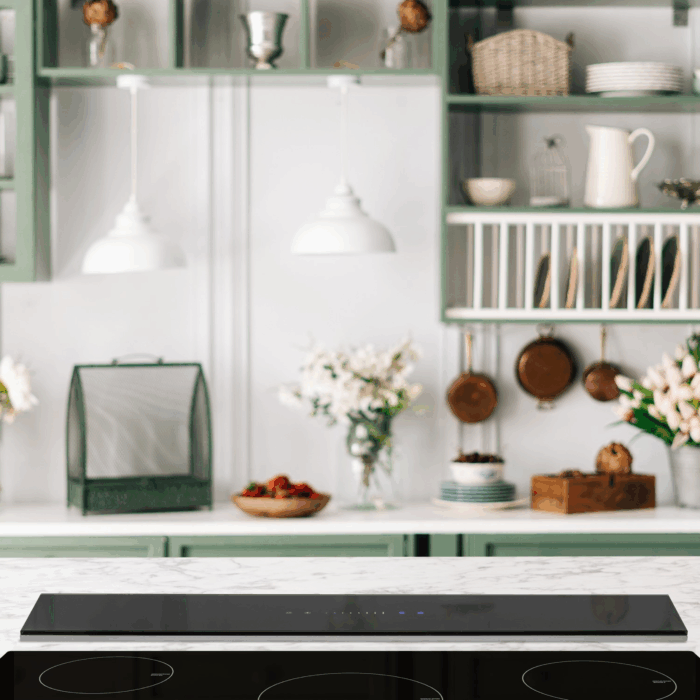 Invisible cuando no se usa, esta campana se eleva con solo un toque, convirtiéndose en el aliado perfecto para cocinas con isla o espacios abiertos. Su diseño down-draft mantiene las líneas limpias del ambiente, sin obstruir la vista ni el diseño general.