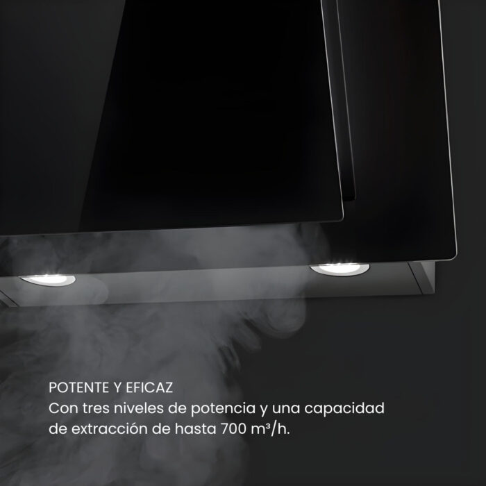 Controlador Touch 3 velocidades de extracción: 300 m³/h, 450 m³/h Y 550 m³/h. Ancho: 90 cm. Color: Negro Extensible