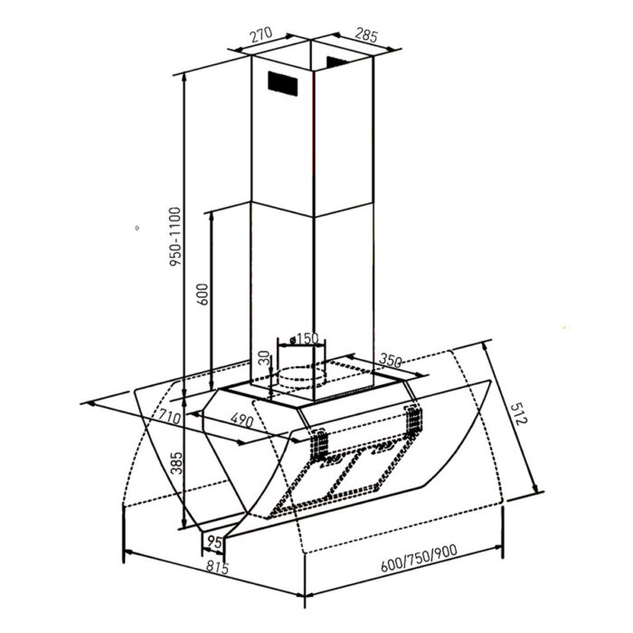 - Medida: Con un ancho de 900 mm, cubre de manera óptima la superficie de cocción, ideal para cocinas grandes que requieren un área de ventilación amplia.