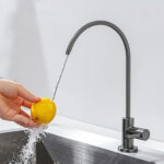 Instalación sobre-mesada: Se integra fácilmente al lado de la grifería principal de cocina.